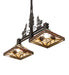 Inspired by the Pine Tree forests from Flagstaff, Arizona, to Central Oregon to the Black Hills of Wyoming. This stunning stained glass shade design features the iconic Pinecone, one of Mother Nature's most compelling organic symbols, which offers natural elegance and represents the evolution of human enlightenment. Burgundy and Leaf Green bands edge these two woodland-styled Misson-shaped shades that highlight Light Brown Art Glass pinecones and Golden Sun branches on a Beige art glass shade. The art glass shades, created using the famous Meyda Tiffany copperfoil construction process, are enhanced with a dramatic Tall Pines with mountain silhouetted frame and hardware featured in a Coffee Bean finish. Ideal for illuminating kitchen islands, counters, bars, dining tables, and reception areas. The Pinecone 2 Light Oblong Island Pendant is featured in our American-made, American-designed, handmade Nature Inspired Collection and manufactured in Yorkville, NY. UL & cUL listed for dry and damp locations.