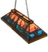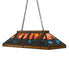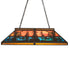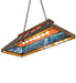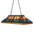 Above the Blue-Green art glass water's edge with waves of shimmering light, a mesmerizing stand of grand Tall Pine trees overlook as the warm, brilliant sun shines in the sunset sky featuring a brilliant Sunburst colored glass. The oblong ceiling pendant is complemented with decorative accents and a frame featured in a Timeless Bronze finish. On the lower border of the shade are Amber Mica panels. Inspired by the pine trees in the Adirondack Mountains in Upstate New York, the Sawtooth National Forest in Idaho and Utah, to the Sierra National Forest in California and Nevada. Ideal for illuminating billiard tables, bars, counters, and kitchen islands. The Tall Pines Oblong Pendant is featured in our American-made, American-designed Nature Inspired Lighting Collection and manufactured in Yorkville, NY. UL and cUL listed for dry and damp locations.