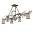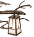 As if swaying in the frosty winter wind, this Winter Solstice fixture breathes life into a pine tree branch design accentuated with beautiful ambient lighting. Six Craftsman-style White Iridescent Glass Lanterns become luminescent as they are suspended from a pine branch-style metal frame featured in a Dark Burnished Antique Copper finish. This oblong chandelier perfectly complements any residential or commercial environment, especially over kitchen islands, counters, tables, or bars. Inspired by the Monongahela Forest in West Virginia, to the Shawnee National Forest in Illinois, to the Bridger-Teton Forest in Wyoming. The Winter Solstice Oblong Chandelier is included in our American-made, American-designed, handcrafted Nature Inspired Collection. Manufactured in Yorkville, New York. UL and cUL listed for dry and damp locations.