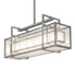 A sleek architectural structure in light. The Nelson oblong pendant is designed with a Clear Seeded Glass shade, which surrounds a smaller White Glass oblong diffuser. The fixture is complemented by an elaborately structured frame finished in Matte Clear. The oblong fixture is ideal for illuminating billiard tables, kitchen islands, counters, bars, reception areas, and other spaces from Boston, Massachusetts, to Houston, Texas. The Nelson Oblong Pendant is included in our American-made, American-designed Modern Architectural Collection and manufactured in Yorkville, NY. UL and cUL listed for dry and damp locations.