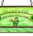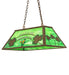 Designed with the PACKY'S PUB name and Serving Since 1985 with artwork featuring shamrocks and a leprechaun. This stunning personalized art glass oblong pendant features a Green art glass shade complemented with an Antique Copper finish. This oblong pendant is ideal for illuminating billiard tables, bars, kitchen islands, counters, and dining tables. The overall height ranges from 18 to 36 inches, as the chain can easily be adjusted in the field to your exact specifications. The Personalized Packy's Pub Oblong Pendant is included in the American-made, American-designed, handcrafted Personalized Collection and manufactured in Yorkville, New York. UL and cUL listed for dry and damp locations. This specific fixture is not available for sale but is shown as is to demonstrate our custom capabilities. Contact us for more info.