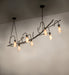 As if swaying in the frosty winter wind, this Winter Solstice fixture breathes life into a pine branch-style metal design accentuated with beautiful ambient lighting. Seven Silver Mica shades become luminescent as they are embraced by a metal frame featured in a Dark Burnished Antique Copper finish. This massive oblong chandelier perfectly complements any residential or commercial environment, especially over kitchen islands, counters, tables, and bars. The overall height ranges from 16 to 36 inches, as the chain can easily be adjusted to meet your exact lighting requirements. The fixture design is inspired by trees in the Monongahela Forest in West Virginia, the Shawnee National Forest in Illinois, and the Bridger-Teton Forest in Wyoming. The Winter Solstice Oblong Chandelier is included in our American-made, American-designed, handcrafted Nature Inspired Collection and manufactured in Yorkville, New York. UL and cUL listed for dry and damp locations.
