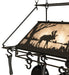 A handsome Nature-inspired chandelier featuring a majestic Moose meandering by a woodland lake and doubling as a lighted pot rack... The lighted pot rack features a Silver Mica shade and a sturdy frame with a stunning Textured Black finish. The fixture is designed with hooks to display fine cookware and accessories in a culinary space in residential settings from Orange Beach, Alabama, to Telluride, Colorado. The overall height ranges from 21 to 34 inches, as the chain length can be easily adjusted in the field to accommodate your specific lighting needs. The Moose at Lake Lighted Pot Rack is included in our American-made, American-designed, handcrafted Pot Rack Collection and manufactured in Yorkville, New York. UL and cUL listed for dry and damp locations. (Cookware not included).