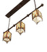 Like primitive folk art, this beautiful ceiling pendant is majestic in its simplicity. Created from Dusky Mauve, Olive, and Honey art glass and accented with clear glass jewels, the three shades are embraced by hardware hand-finished in a warm Mahogany Bronze. The fixture is ideal for illuminating kitchen islands, counters, and bars in residential and hospitality spaces. The Cottage Mission 3 Light Island Pendant is included in our American-designed, handcrafted Mission Lighting Collection. UL and cUL listed for dry and damp locations. Each shade is a unique work of art with color variations based on natural ingredients inherent in the glass.