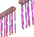 Over four dozen Starburst Brass finished cylinders are designed with state-of-the-art RGB LED technology to maximize your color-changing capabilities. The enormous showering pendant includes two metal frames to create a magnificent modern work of art as a storefront entry. Integral LEDs offer high-quality illumination, energy savings, and minimal maintenance. The fixture is ideal for illuminating reception areas, entryways, stairways, and other large spaces in hospitality and commercial settings. The Barra de luzis is included in our American-made, American-designed, handcrafted Modern Lighting Collection. UL and cUL listed for dry and damp locations. Custom Made. Call for lead time and pricing. The fixture was designed by JGA of Southfield, Michigan, and featured in Tapper's Jewelry Store in Troy, Michigan. The pendant was sold through Tarrant Lighting.