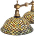 A Louis Comfort Tiffany studio classic... The renowned Fishscale design features a variegated Tortoiseshell of Emerald, Sapphire, Mauve, and Beige colored art glass, evoking a unique dimensional and textured look in a rainbow of brilliant hues. These two exquisite art glass shades are created using the famous Meyda Tiffany copperfoil construction technique and enhanced with a Brass powder coat finish. The oblong pendant is ideal for illuminating bars, billiard tables, kitchen islands, counters, and dining tables as it elevates the decorative appeal in homes, resorts, and hotels. The overall height of the fixture ranges from 21 to 42 inches, as the chain can be easily adjusted on location to meet your lighting needs. The Tiffany Fishscale 2 Light Island Pendant is included in our American-designed, handcrafted Tiffany Reproduction Lighting Collection. It is UL and cUL listed for dry and damp locations. Each shade is a unique work of art with color variations based on natural ingredients inherent in the glass.