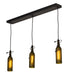 A hand forged vine and leaf coil around the neck of each of three handsome Weathered Leaf Green wine bottles that have been softly etched for diffusion. Your connoisseur will appreciate the detail and vintage of this charming three light island bar.