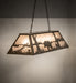 A Black Bear wanders by a lake in the woods on this nature inspired oblong pendant. The rustic fixture is finished in Antique Copper, has Silver mica panels, and is handcrafted in the USA by Meyda artisans.