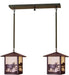The majestic North Woods Moose is depicted on this handsome American Craftsman lantern style two light pendant. The fixture, handcrafted in the USA by Meyda artisans, is finished in Craftsman Brown and has Iridized Beige glass panels.