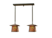 Pine Cone laden branches accent this handsome American Craftsman lantern style two light pendant. The fixture, handcrafted in the USA by Meyda artisans, is finished in Craftsman Brown and has Amber mica panels.