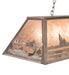 The North Woods Trout is depicted on this rustic tree and branch accented billiard and kitchen island ceiling pendant. Handmade in the USA by Meyda Tiffany craftsmen, this fixture is hand finished in Steel and featured with a stunning Silver Mica shade.