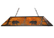 A Black Bear wanders by a lake in the woods on this nature inspired oblong pendant. The rustic fixture is finished in Black, has Amber mica panels, and is handcrafted in the USA by Meyda artisans.
