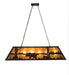 Drawing inspiration from the wildlife and natural beauty in the nearby Adirondack Mountains. This stunning lighting fixture depicts a majestic Bear wandering around a woodland lake. A beautiful ambient glow projects through an Amber Mica shade which is complemented with a frame and hardware featured in a bold Black finish. Overall height ranges from 16 to 45.5 as the chain can be adjusted easily in the field. Ideal for illuminating billiard tables, islands, counters and other areas. Made to Order in our 180,000 sq ft manufacturing facility in Yorkville, NY. Shade colors, metal finishes and pendant sizes can be customized. UL and cUL listed for damp and dry locations.