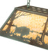Buffalo by a lake in the woods is depicted on an oblong pendant. This American Bison fixture is finished in Antique Copper, has Verdigris glass panels and is handcrafted in the USA by Meyda artisans. "
