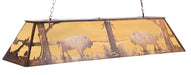 The majestic Buffalo is depicted on this billiard/ kitchen island pendant, illuminated through panels of beautiful Beige art glass. The versatile fixture features an Antique Copper with Verdigris finish. Handcrafted in the USA by Meyda artisans with meticulous attention to detail.