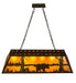 A Black Bear wanders by a lake in the woods on this nature inspired oblong pendant. The rustic fixture is finished in Timeless Bronze, has Amber mica panels, and is handcrafted in the USA by Meyda artisans.