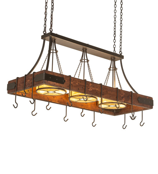 An upscale rustic design that integrates form and function, the Steamboat Pot Rack is highlighted with Bronze Hand-Forged Iron arms, decorative acc...