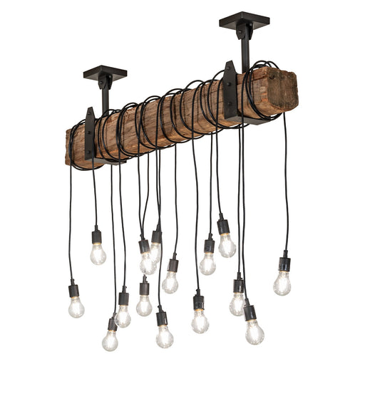 Rustic, edgy charm and industrial influences come to light with this handsome and unique wooden ceiling pendant. The Reclaimed Wooden Beam is embra...