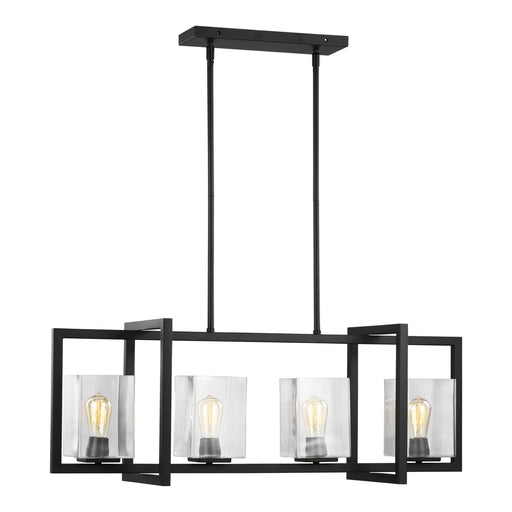 Details:Product Type: 4 Light +Finish: Matte BlackShade: ClearMeasurements:Width / Dia: 50.38"Height: 15.13"Length: 23.50"Extension: 23.50"Canopy: ...