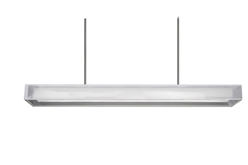 Suspended rectangular pendant with rectangular canopy. Down light is emitted from pairs of 42 and 10 inches long rectangular LED arrays concealed b...