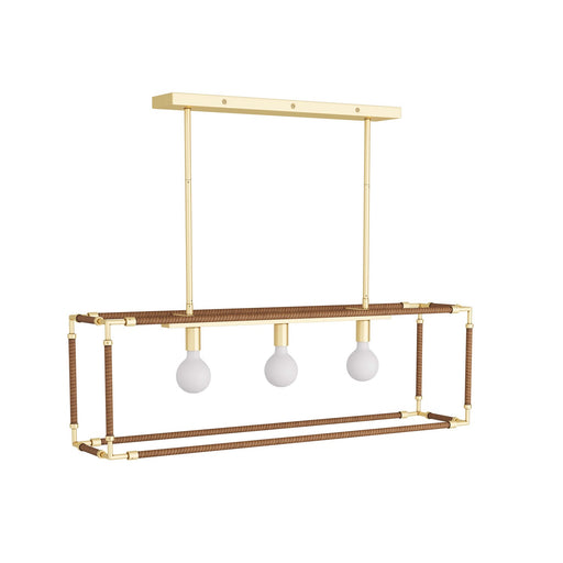 Sturdy leather straps in a moss hue give this linear fixture an equestrian modern vibe. Suspended from an iron frame plated in antique brass, they ...