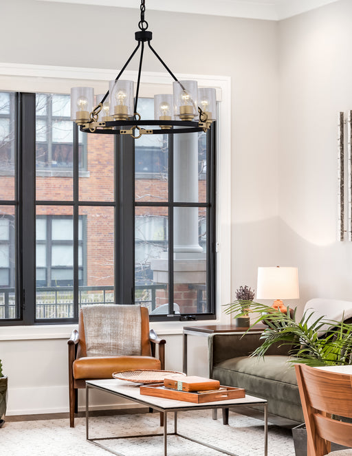 View full detailsJustice Designs NSH-8043-MBBR Nine Light Chandelier, Matte Black w/ Brass