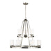 The Kemal nine light multi-tier chandelier in brushed nickel provides abundant light to your home, while adding style and interest.