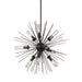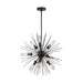 The Hilo nine light outdoor chandeliers in oil-rubbed bronze create a warm and inviting welcome presentation for your home's exterior. Hilo features slim metal arms extending from a center hub to create an organic globe silhouette. This damp-rated fixture is perfect for modernizing both indoor and covered outdoor spaces. Hilo uses candelabra bulbs covered in clear glass to protect from moisture.