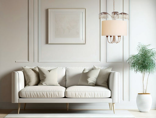Thoughtfully designed and crisply tailored, this Meridian 5-light chandelier will bring bright style to any space. The white fabric shades are edge...