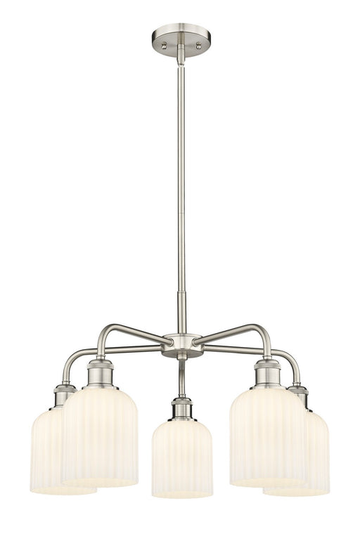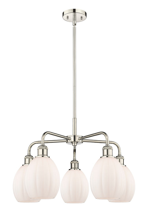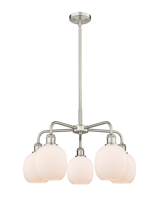 Ellery - 5 Light - 23 inch - Satin Nickel - White Shade - ChandelierDetails:Product Type: Glass DownFinish: Satin NickelShade: White ElleryRooms: K...