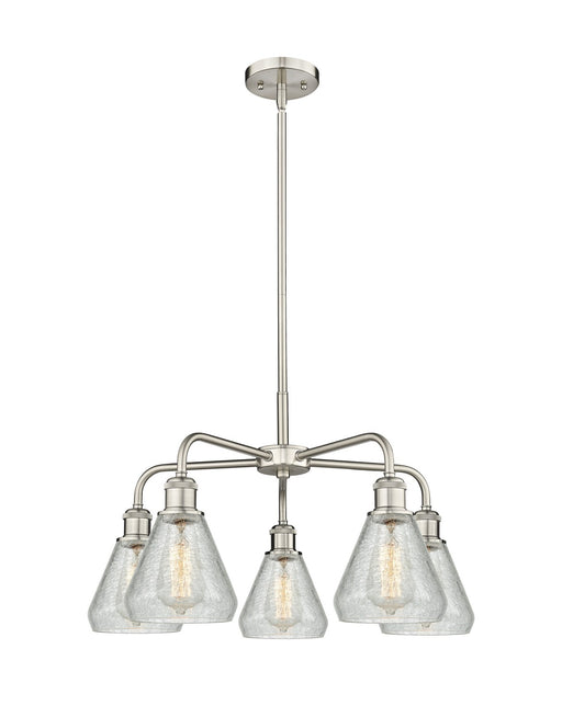 Conesus - 5 Light - 24 inch - Satin Nickel - Clear Crackle Shade - ChandelierDetails:Product Type: Glass DownFinish: Satin NickelShade: Clear Crack...