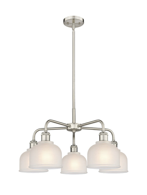 Dayton - 5 Light - 24 inch - Satin Nickel - White Shade - ChandelierDetails:Product Type: Glass DownFinish: Satin NickelShade: White DaytonRooms: K...
