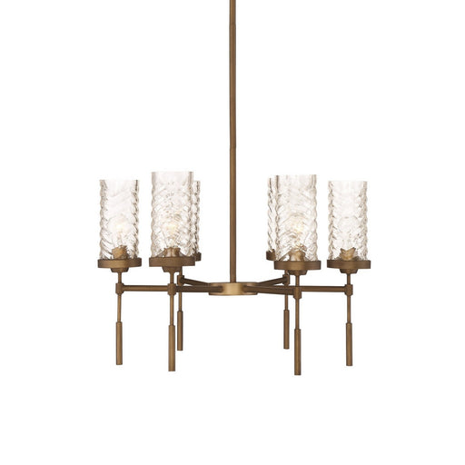 6-Light 26" Armed Chandelier with Individual Clear Wave Styled Cylindrical Glass Shade on a Antique Brass Decorative Metal Frame.Details:Product Ty...