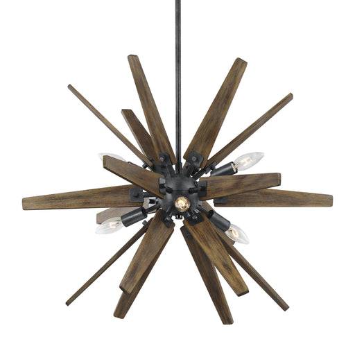 View full detailsVisual Comfort Studio F3257/6DWZ/WOW Six Light Chandelier, Dark Weathered Zinc / Weathered Oak