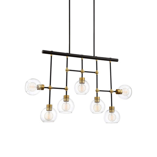 7-Light 42" Geometric Globe Chandelier with Clear Glass Globes and Polished Brass & Matte Black Metal Finish.Details:Product Type: Glass DownFi...