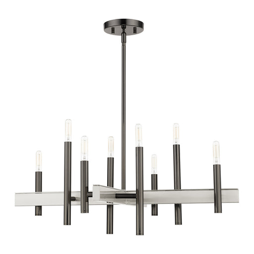 Livex Lighting 49348-46 Eight Light Chandelier, Black Chrome w/ Brushed Nickels