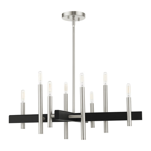 Livex Lighting 49348-91 Eight Light Chandelier, Brushed Nickel w/ Blacks