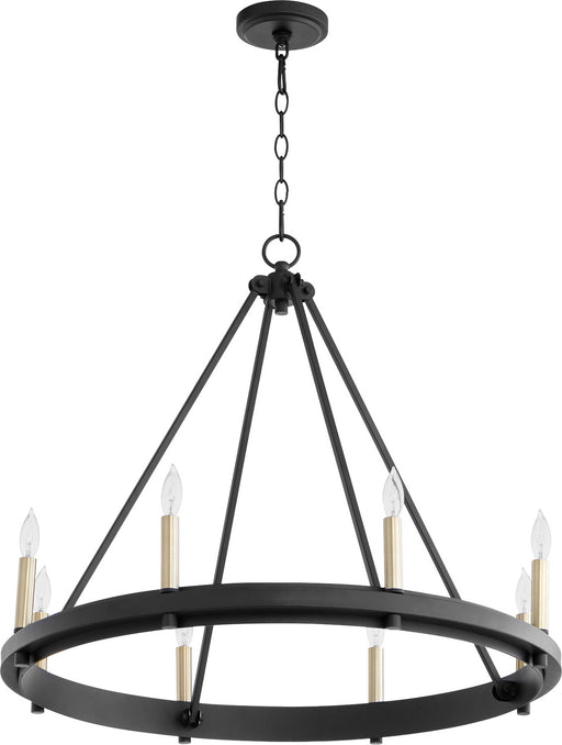 View full detailsQuorum 607-8-6980 Eight Light Chandelier, Textured Black w/ Aged Brass
