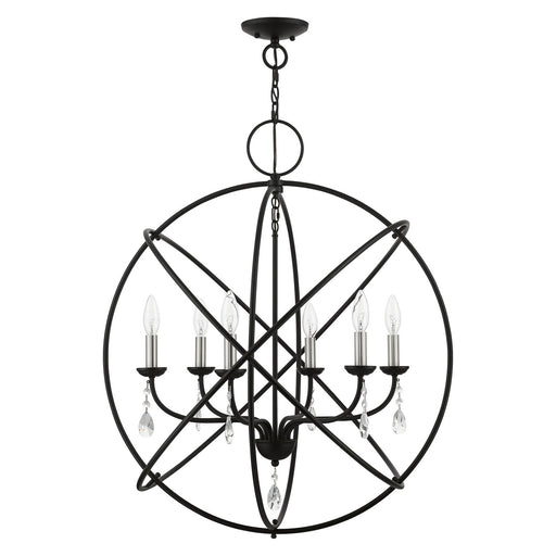 Livex Lighting 40916-04 Six Light Chandelier, Black w/Brushed Nickel Finish Candles