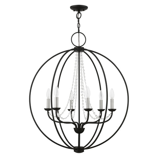 Livex Lighting 40906-04 Six Light Chandelier, Black w/Brushed Nickel Finish Candles