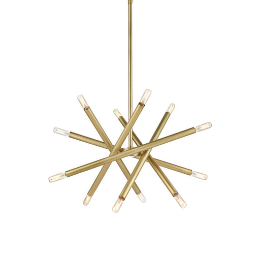 12-Light 21" Modern Sputnik Chandelier with Aged Brass Adjustable Cylinders and Metal Finish.Details:Product Type: StarburstFinish: Aged BrassMeasu...