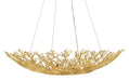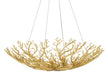 Sprays of wrought iron in a gold gilt finish flutter up to form the shade of the Sea Fan Bowl Chandelier, designed by Aviva Stanoff. She says of the inspiration for the design of this gold chandelier, "When I had my DNA test done, it turned out I am 12% mermaid! As a native Californian, the sea has always been by my side and has kept my secrets. I have a deep reverence for nature and particularly the ocean, and sea fans that live underwater remind us that we live among tides, that life is cyclical, and that there is beauty in believing in magic."
