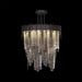 Inspired by the love of Jazz and the harmonious arrangement of musical notes, this Arpeggio pendant features panels of cascading glass fused together to create a chorus of visual delight. The collection emulates melody and movement, characterized by its multi-layered design of fused-glass panels, combining clear and colored glass to create a captivating, textured look. Color glass options feature textured glass panels masterfully layered and fused together in clear, or multi-tonal mix of clear, smoke, and bronze, with Midnight Steel or Soft Gold Leaf finish options.