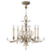Chandelier in a warm muted silver leaf finish featuring beveled crystal accents.