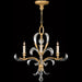 Chandelier in a warm muted gold leaf finish featuring beveled crystal accents.