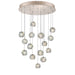 The Nebula creates the essence of cosmos through hand forming of optic impressions while infusing the crystal with the reflective quality dichroic glass. Each piece is as individual as the rainbows of light from the galaxies above. Gold-toned silver leaf canopy. Also available in platinized silver leaf with choice of additional crystal glass options. For 220V, item is configured with halogen G4 bulb(s).