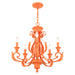 The Valencia is a classically inspired fixture with an overlapping leaf pattern and graceful curves. It is reminiscent of a European trestle though the elements of this piece are beautifully rendered in a shiny orange finish, which creates a much more contemporary feeling. This five-light chandelier is perfect for any interior design style. Suspended in your living room, dining room or bedroom, this light will add glamour to your life.