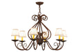 A sumptuous decorative design evokes a rich lustrous charm. Jenna features a stunning Rusty Nail finish. The Hand-Forged Iron Scrollwork and bobeches embrace 6 Ivory faux candlelights topped with Natural Textrene shades. The overall height ranges from 28 to 87 inches as the chain length can be easily adjusted in the field to accommodate your specific lighting application needs. Handcrafted in our 180,000 square foot manufacturing facility in Yorkville, New York. Shade colors, metal finishes and fixture sizes can be customized to your needs. UL and cUL listed for dry and damp locations however we do not recommend installing it in spaces that experience a large amount of moisture due to the fabric shades.