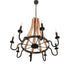 Nostalgic charm greets an authentic elegance suited for a variety of fine homes and businesses. This captivating lighting design was inspired by Antique Wooden staves traditionally bound by wooden hoops in the construction of beer/whisky barrels and wine casks. Costello Black finished solid stout Steelcurvedarms support eight bobechesaccented with Natural Wood faux candles on its perimeter. The chandelier is perfect for lobbies, foyers, banquet rooms and reception areas. Custom crafted by Meyda artisans in our manufacturing facility upstate New York, this fixture is available in custom colors, styles, sizes and dimmable energy efficient lamping options.