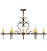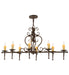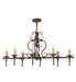 The distinctive oblong chandelier captures an exquisite, rich, timeless design. Monica features eight Ivory faux candlelights embraced by an exquisite Gilded Tobacco finished frame adorned with fancy scrollwork. Ideal for lighting billiard tables, islands, bars, counters, and tabletops. This handsome chandelier is perfect for providing beautiful ambient lighting over in residential and hospitality spaces in Traverse City, Michigan, to Lake Tahoe, Nevada, to Lake Geneva, Wisconsin. The overall height ranges from 29 to 100 inches as the chain easily adjusts in the field to meet your exact lighting requirements. The Monica 8 Light Oblong Chandelier is included in our American-made, American-designed, handcrafted Transitional Lighting Collection and manufactured in Yorkville, New York. UL and cUL listed for dry and damp locations.